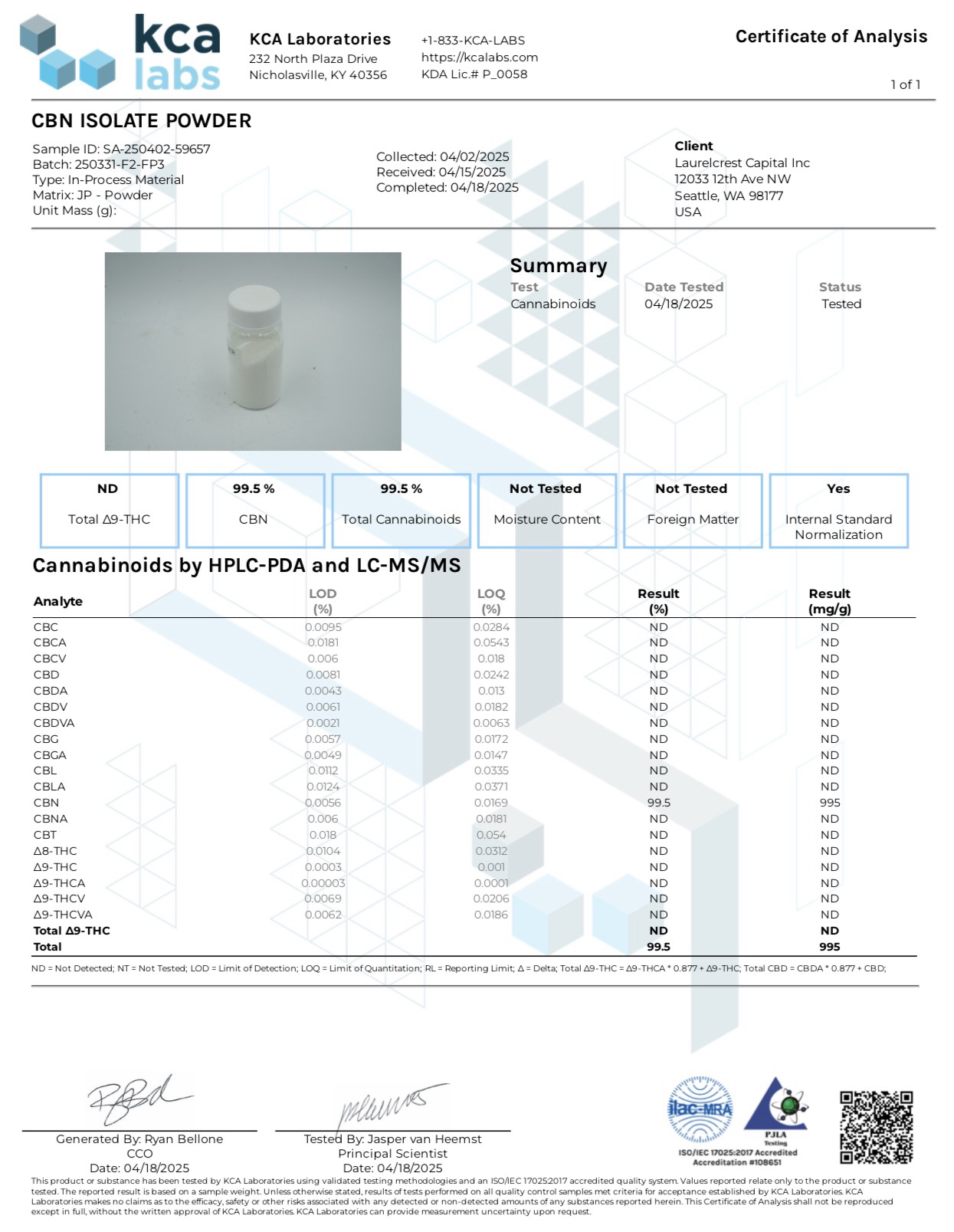 深みあるリラックス設計に最適な高純度CBN。リキッド/エディブルなどへのブレンドで存在感を発揮。